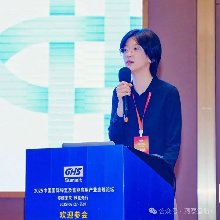 落基⼭研究所交通氢能和技术创新项目咨询师张博雅做了题为《中国绿氢产业和技术发展现状及趋势》的主题报告。报告聚焦中国绿氢产业发展趋势,指出在碳中和目标下,2060 年我国氢能消费量预计达 1 亿吨 / 年,75% 以上为绿氢。2030 年绿氢电解槽装机量需达 100GW,成本降至 13 元 / 公斤,2060 年装机量 500-750GW,成本低于 8 元 / 公斤。政策体系持续完善,技术上碱性电解槽占主导,PEM 等技术逐步探索。应用以合成氨、甲醇先行,储运环节高压气氢为主。国际标准加速制定,我国正推进绿氢标准建设,落基山研究所提出 “绿氢 100” 愿景并推动试点。