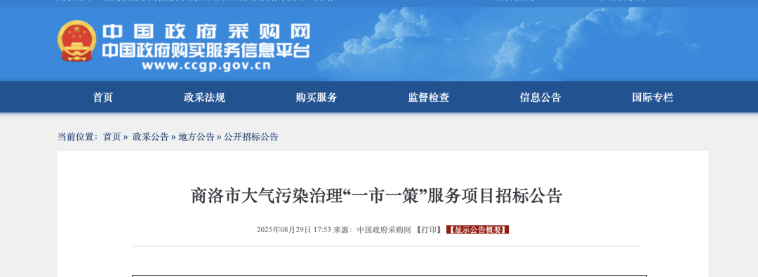 此次招标为环保服务企业提供了参与地方治污的重要契机,也将推动商洛市大气污染治理向更精准、高效的方向迈进。相关企业可及时关注招标动态,积极参与投标,共同为区域生态环境改善贡献力量。