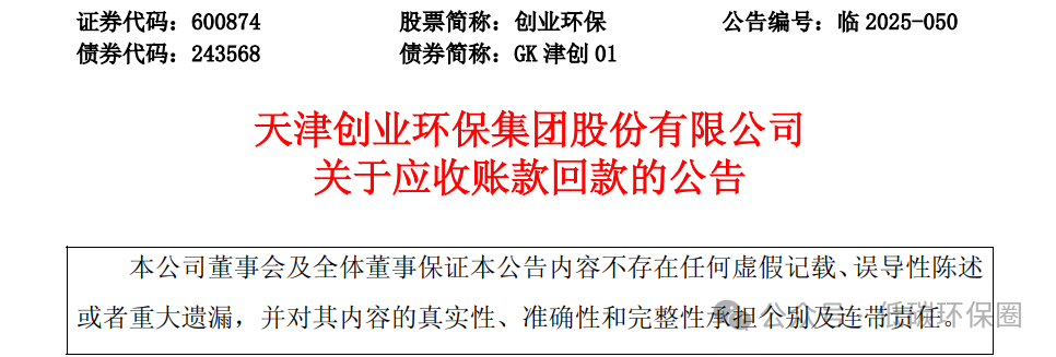 除创业环保外,2025 年多家环保企业公开了回款进展: