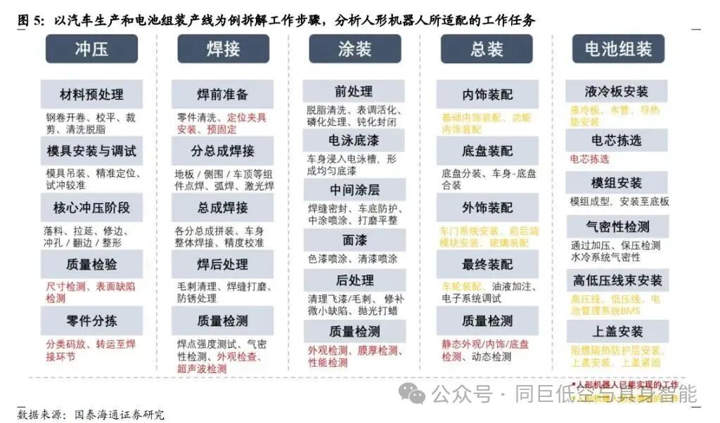 人形机器人不会一上来就接复杂工序,而是从 “短链条任务” 起步 —— 对照下图 ,目前它的落地节奏很明确: