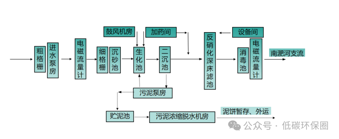 在工艺选择上,厂区采用多模式 AAO 工艺,深度处理搭配反硝化深床滤池 + 消毒工艺,污泥经离心脱水后进行焚烧、建材利用等资源化处置。