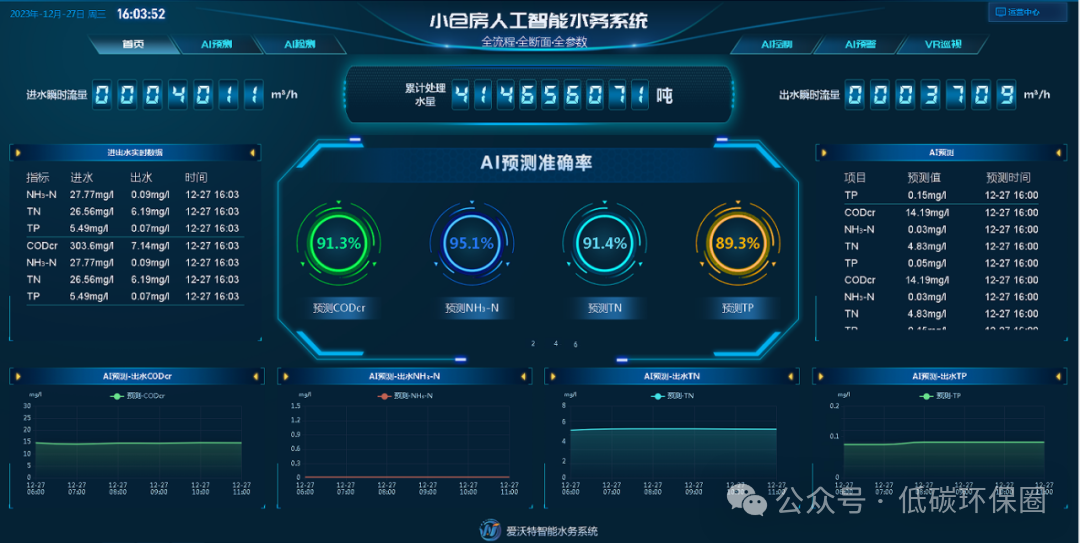 该系统涵盖数据监控、曝气控制、回流控制、加药控制以及出水数据预测等核心功能,将全流程精细控制提升至全新水平,助力电单耗、药剂成本进一步下降。