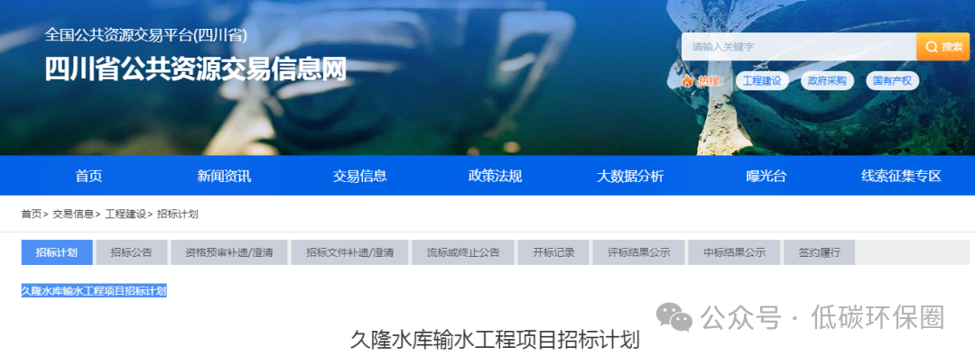 近日,四川久隆水库输水工程项目发布招标预告,项目估算总投资50975.83 万元,预计 2026 年 4 月启动招标。