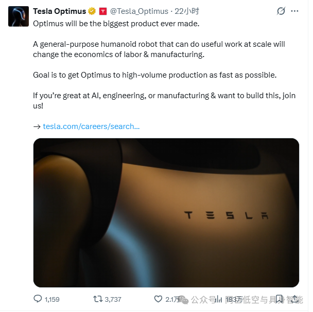 3月25日,Optimus机器人发布招聘公告,招聘人工智能、工程或制造相关人才,称Optimus将改变劳动力和制造业的经济格局,目标是尽快实现Optimus的大规模量产。马斯克表示,Optimus 3有望在今年夏季启动生产,并在2027年实现大规模量产。